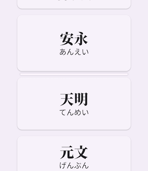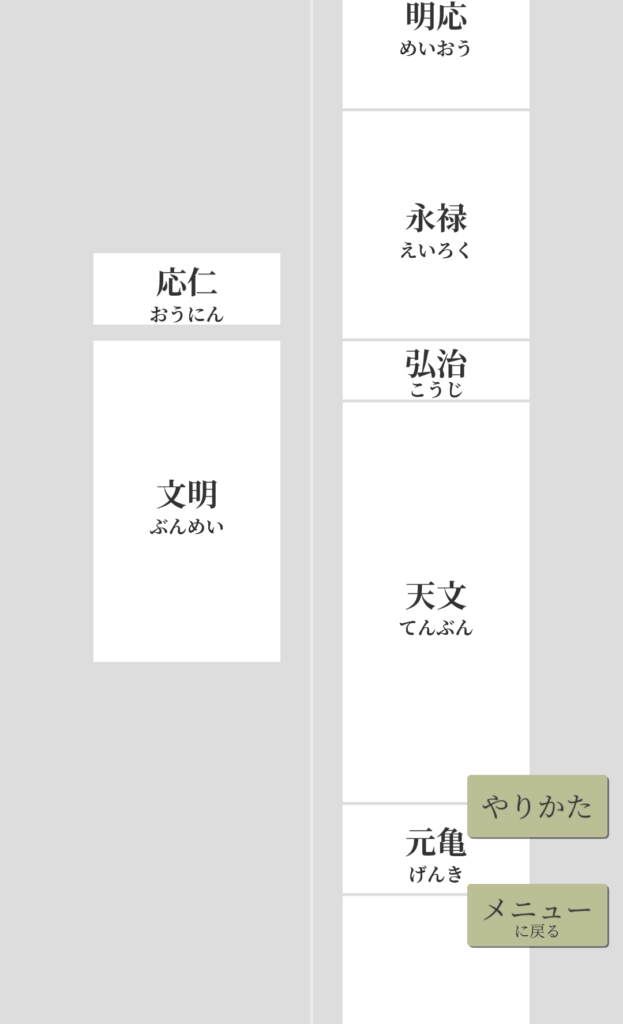 時代小説や大河ドラマを見たりゲームをしたりして、元号(年号)がどのあたりを指し示すか掴めるようになりたい方、というかなりニッチな方向けのアプリではありますが、よろしくお願いします!!